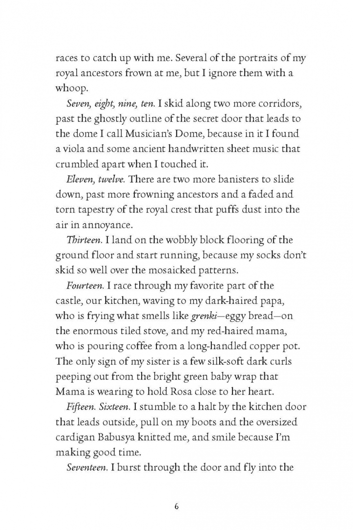 Twelve-year-old Olia knows a thing or two about secrets. Her parents are the caretakers of Castle Mila, a soaring palace with golden domes, lush gardens, and countless rooms. Literally countless rooms. There are rooms that appear and disappear, and rooms that have been hiding themselves for centuries. The only person who can access them is Olia. She has a special bond with the castle, and it seems to trust her with its secrets.
