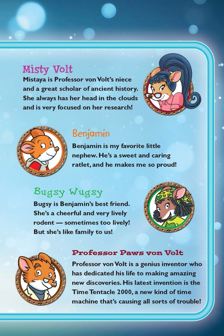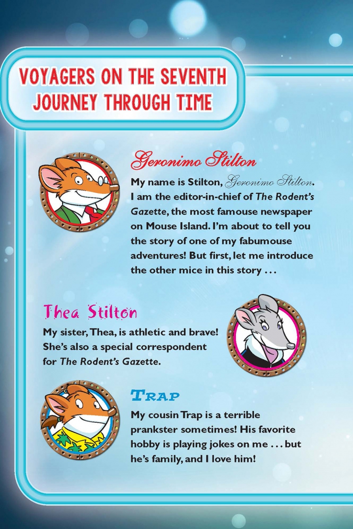 When pirate cats threaten Mouse Island, Professor von Volt sends Geronimo Stilton and his friends back through time to ancient Greece, Atlantis, and Stonehenge to try and find out how ancient civilizations were able to find peace and avoid war - only to find that the key to peace was under their whiskers the whole time.