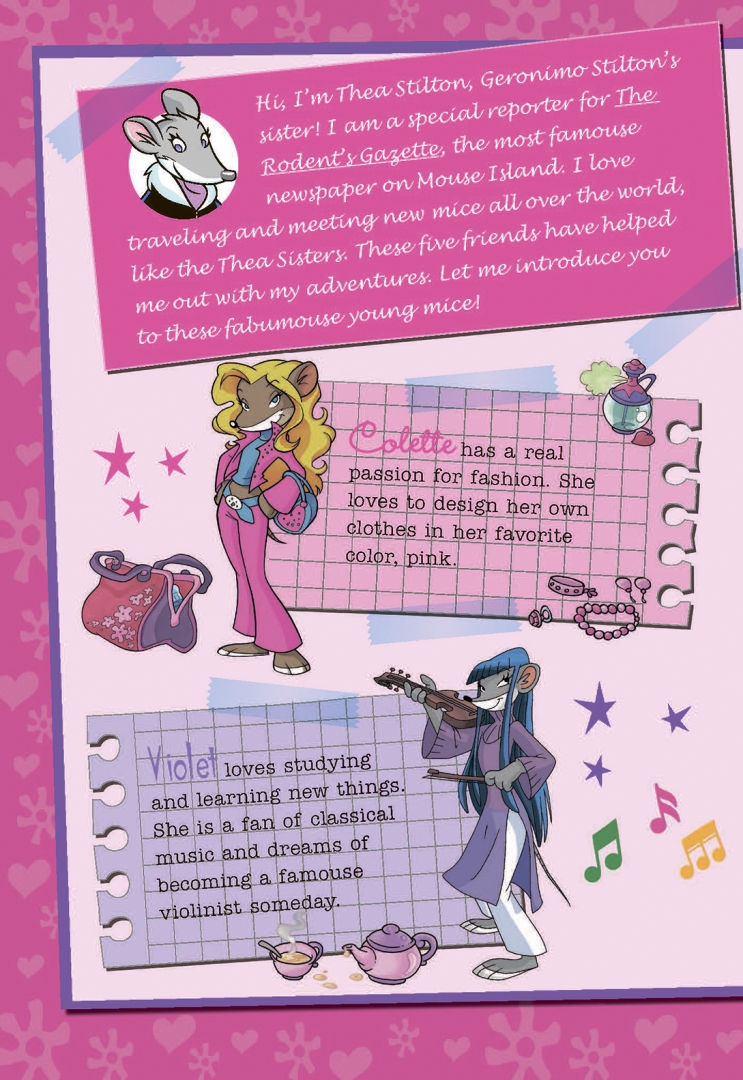The Thea Sisters and some friends want to start a school newspaper. Then Colette's diary is missing and sports reporter Nicky, witnesses something suspicious at the Iron Mouse Games. The Sisters' try to solve both mysteries and still get the paper out on time.