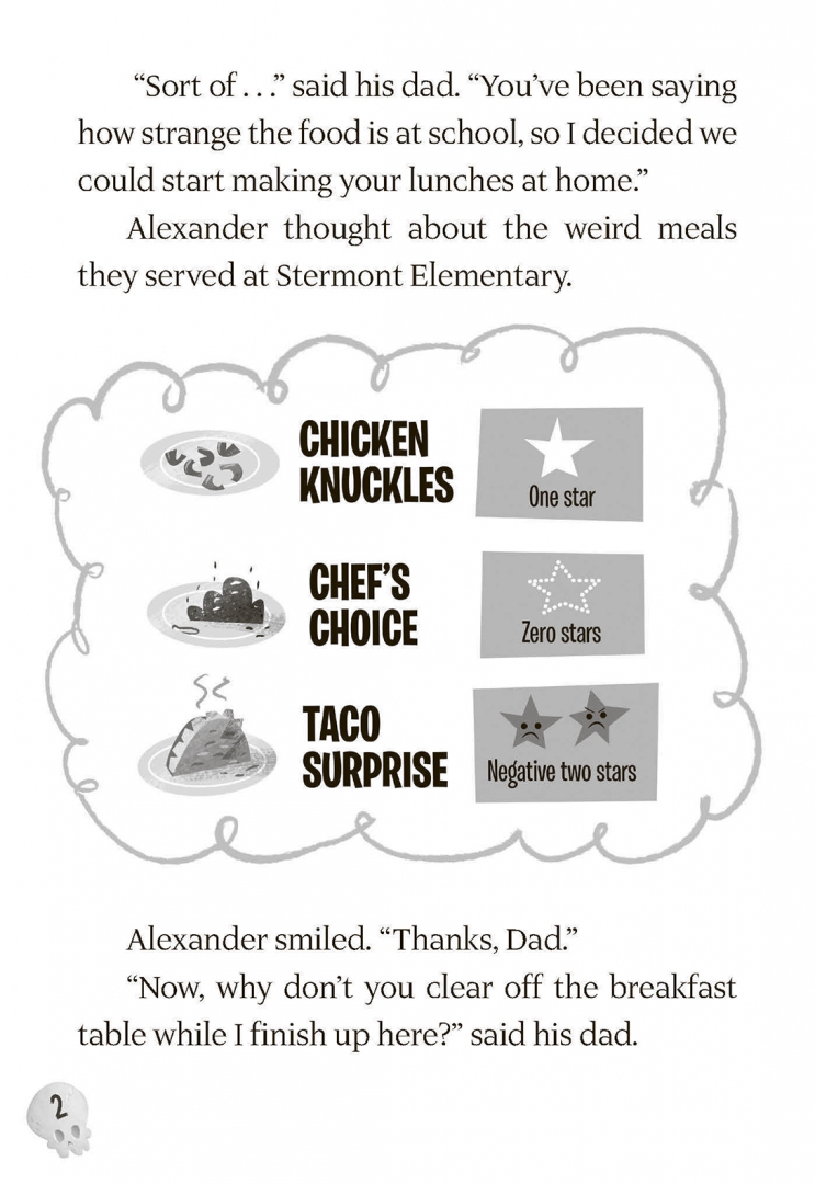In this fourth book, Alexander is still on the look-out for monsters. Now he thinks they're at school.... The lunch menu is not normal - instead of good-for-you meals, there's ice cream and pie every day. His whole class is crying. And his friend Rip goes missing. Alexander must battle giant meat-eating vegetables before the whole town becomes veggie dinner!