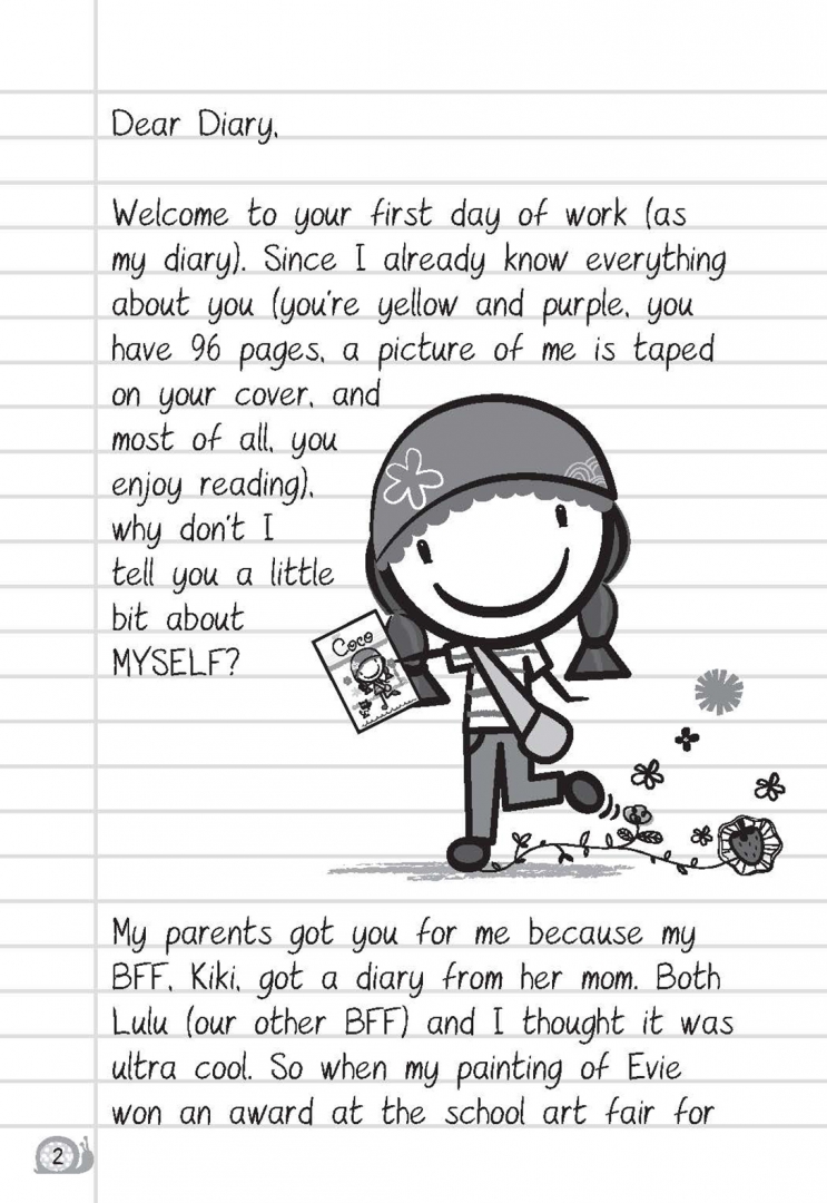 The second book in the Lotus Lane series features Coco. Coco loves hanging out with her friends, baking delicious cupcakes, and rescuing animals...like snails!?! The Lotus Lane Girls organize a cupcake sale to raise money for a veggie garden to help save the snails. Here are some posters Coco and her BFFs make for the bake sale: Slime Makes U Smile - Snails Finish Their Vegetables - S.O.S.! (Save Our Snails!) This book is written as Coco's diary, with fun illustrations and doodles throughout.