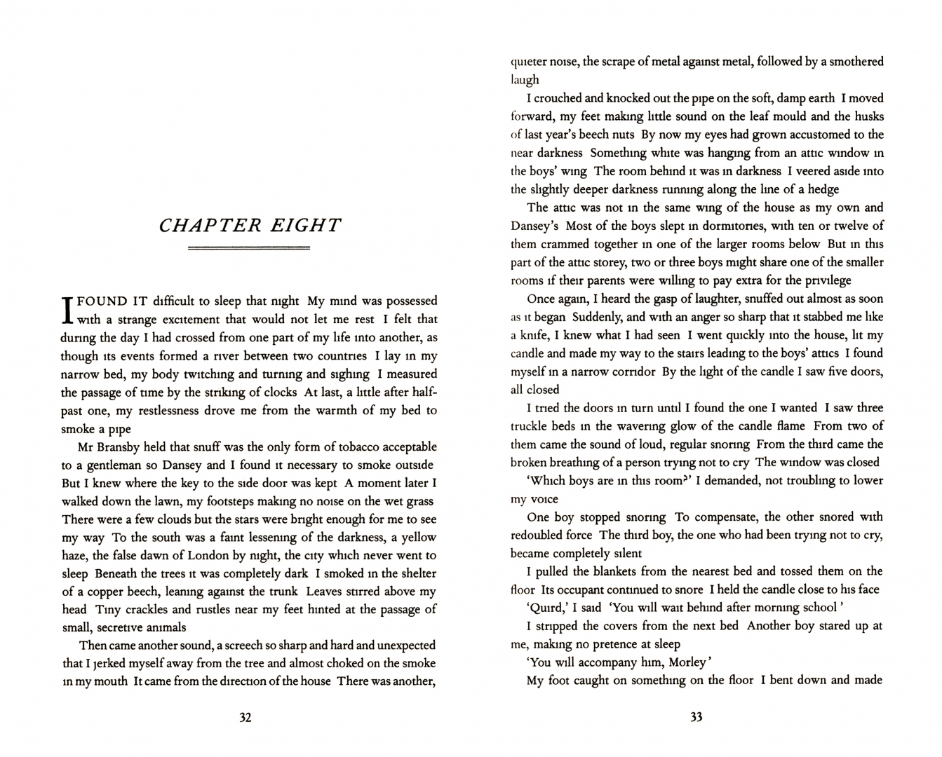 England 1819. Thomas Shield, a master at a school just outside London, is tutor to a young American boy and the child’s sensitive best friend, Charles Frant. Helplessly drawn to Frant’s beautiful, unhappy mother, Shield becomes entwined in their family’s affairs.