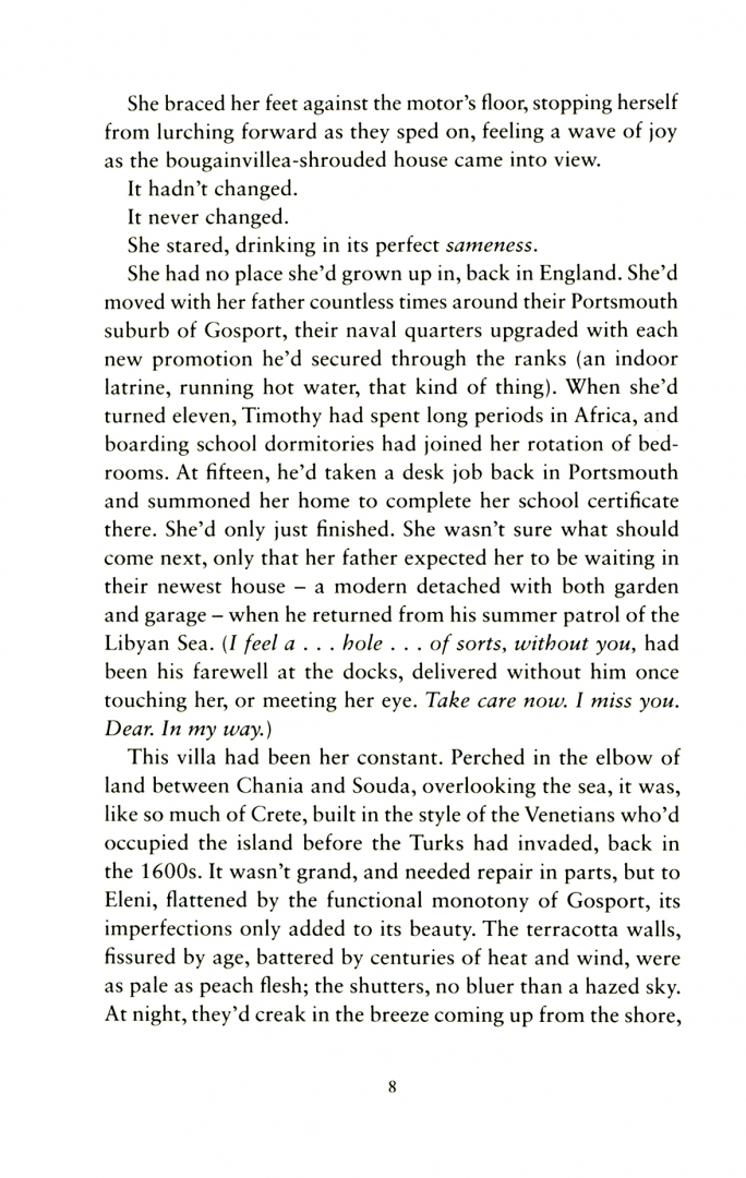 Eleni has been coming to Crete her entire life, swapping her English home for cherished sun-baked summers with her grandfather in his idyllic shoreside villa. When she arrives in 1936, she believes the long, hot weeks ahead will be no different to so many that have gone before.