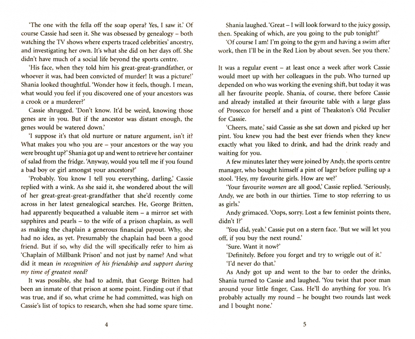 Now. On the surface Cassie is happy with her life: a secure job, good friends, and a loving family. When a mysterious gift in a long-forgotten will leads her to a dark secret in her family's history she's desperate to learn more. But the secrets in Cassie's family aren't all hidden in the past, and her research will soon lead her to a revelation much closer to home - and which will turn everything she knows on its head…