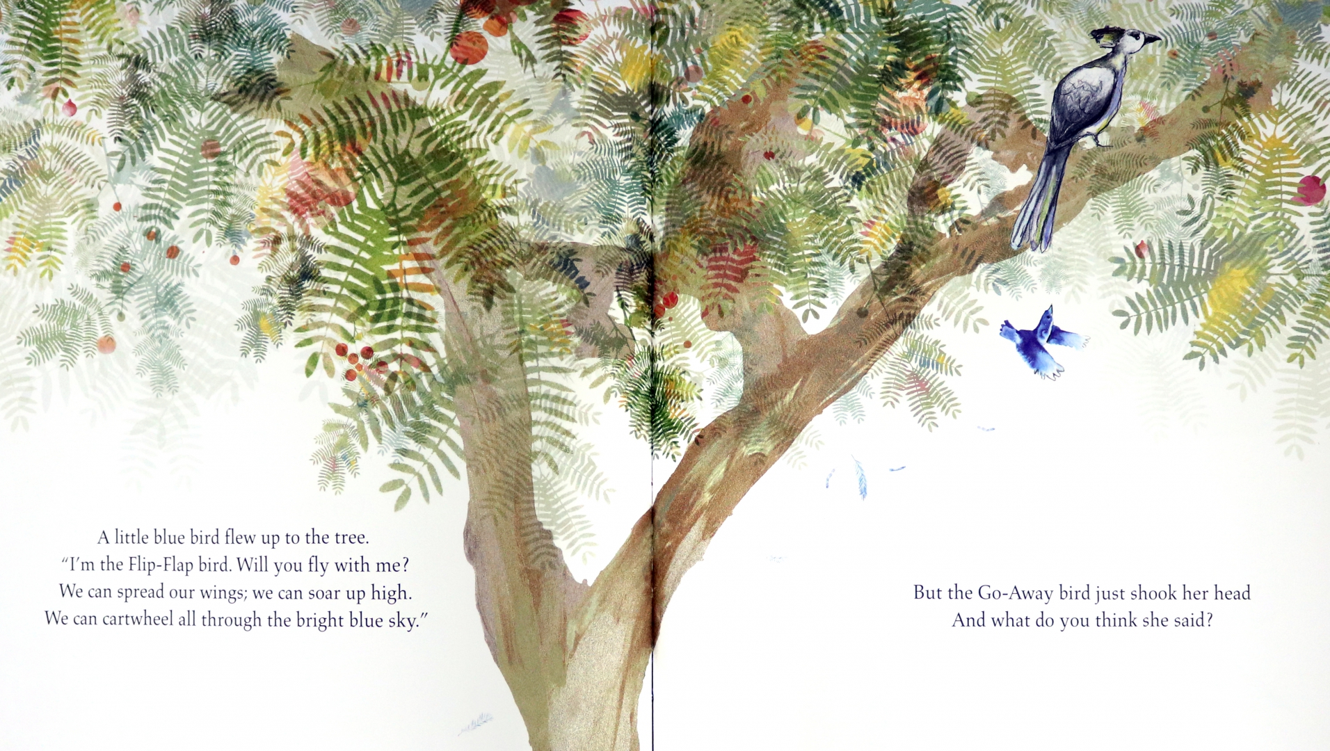 One by one, the other birds fly into her tree, wanting to talk or to play, but the Go-Away bird just shakes her head and sends them all away. But then the dangerous Get-You bird comes along, and she soon realizes that she might need some friends after all . . .