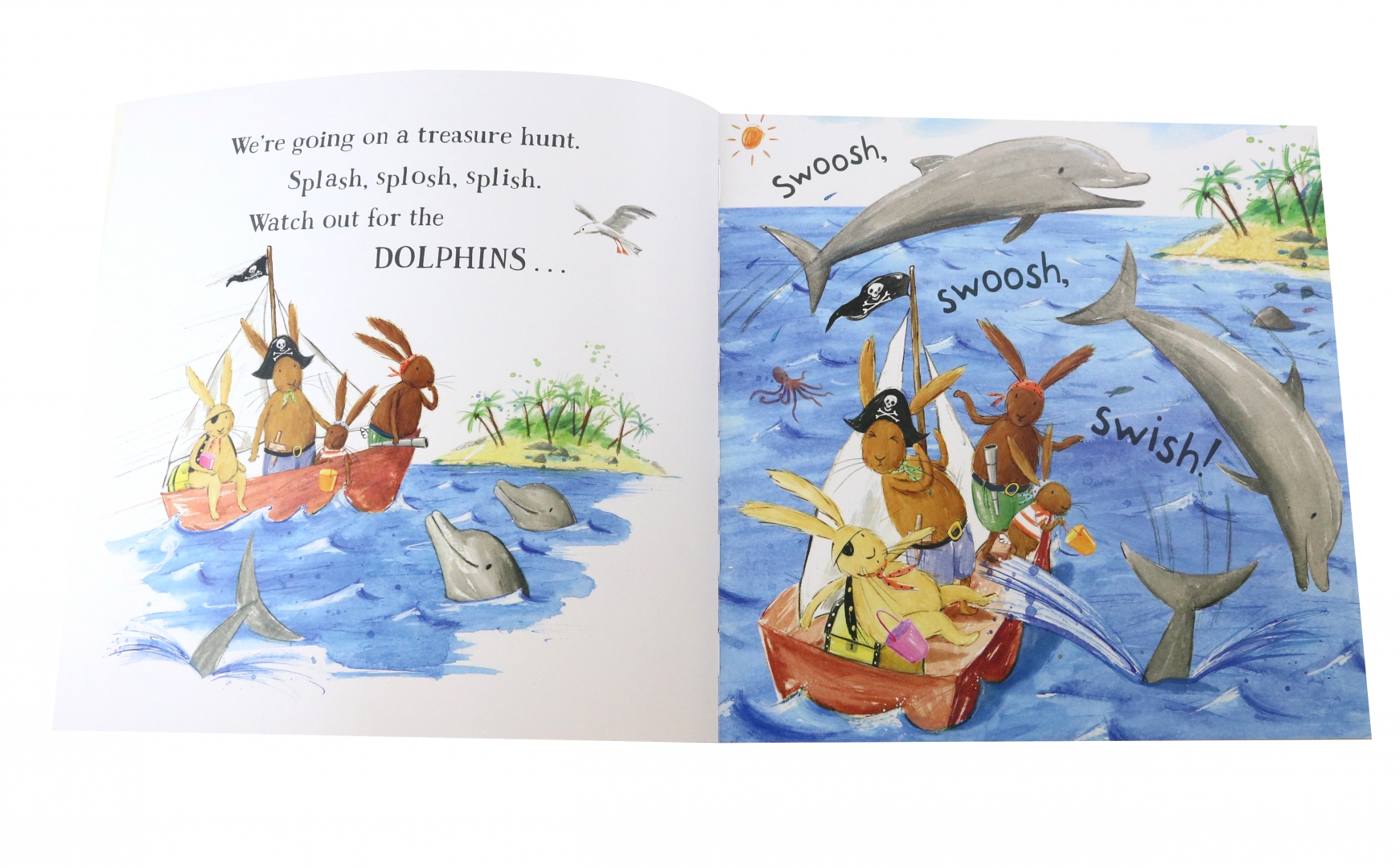 With ten gold coins to find hidden under the flaps, it's an action-packed treasure hunt! You'll need to watch out for the obstacles along the way – leaping dolphins, colourful parrots, scary sharks and naughty monkeys – and help the bunnies get home in time for a delicious SURPRISE! Stuffed with piratical fun, this is the perfect gift for everyone who loves adventure.