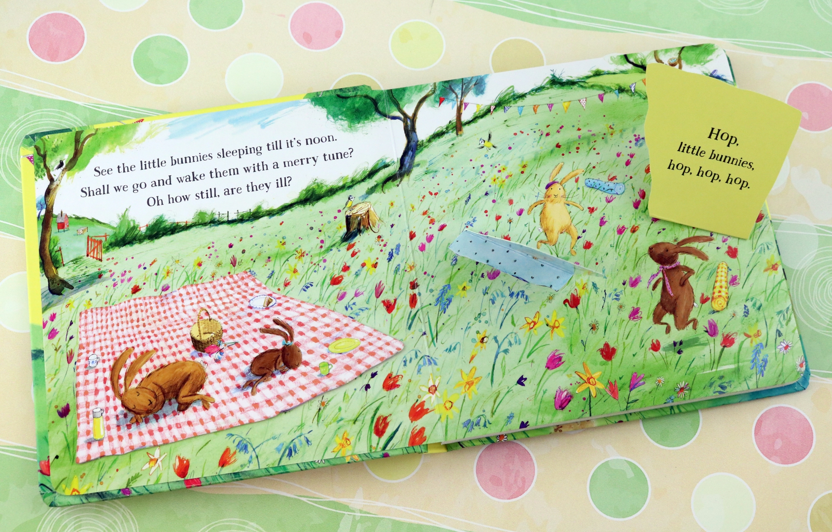 There are lots of sleepy animals to wake up in this bouncy, energetic picture book. Lift the flaps, then hop with the little bunnies, cheep with the chicks, baa with the lambs and mew with the kittens.