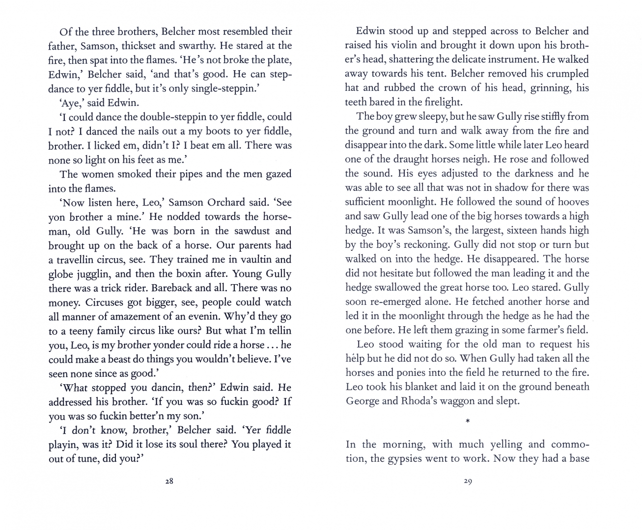 Grazing on berries and sleeping in copses, Leo travels alone through the wild, strange tapestry of the West Country towards Penzance. But a wanderer is never alone for long – and when the gypsy waggons rattle into view, Leo is drawn into a colourful and dangerous world far beyond his imagination.