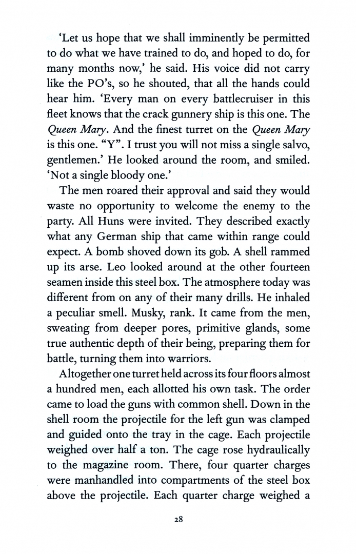 It is 1916. The world has gone to war, and young Leo Sercombe, hauling coal aboard the HMS Queen Mary, is a long way fr om home. The wild, unchanging West Country roads of his boyhood seem very far away from life aboard a battlecruiser, a universe of well-oiled steel, of smoke and spray and sweat, wh ere death seems never more than a heartbeat away.