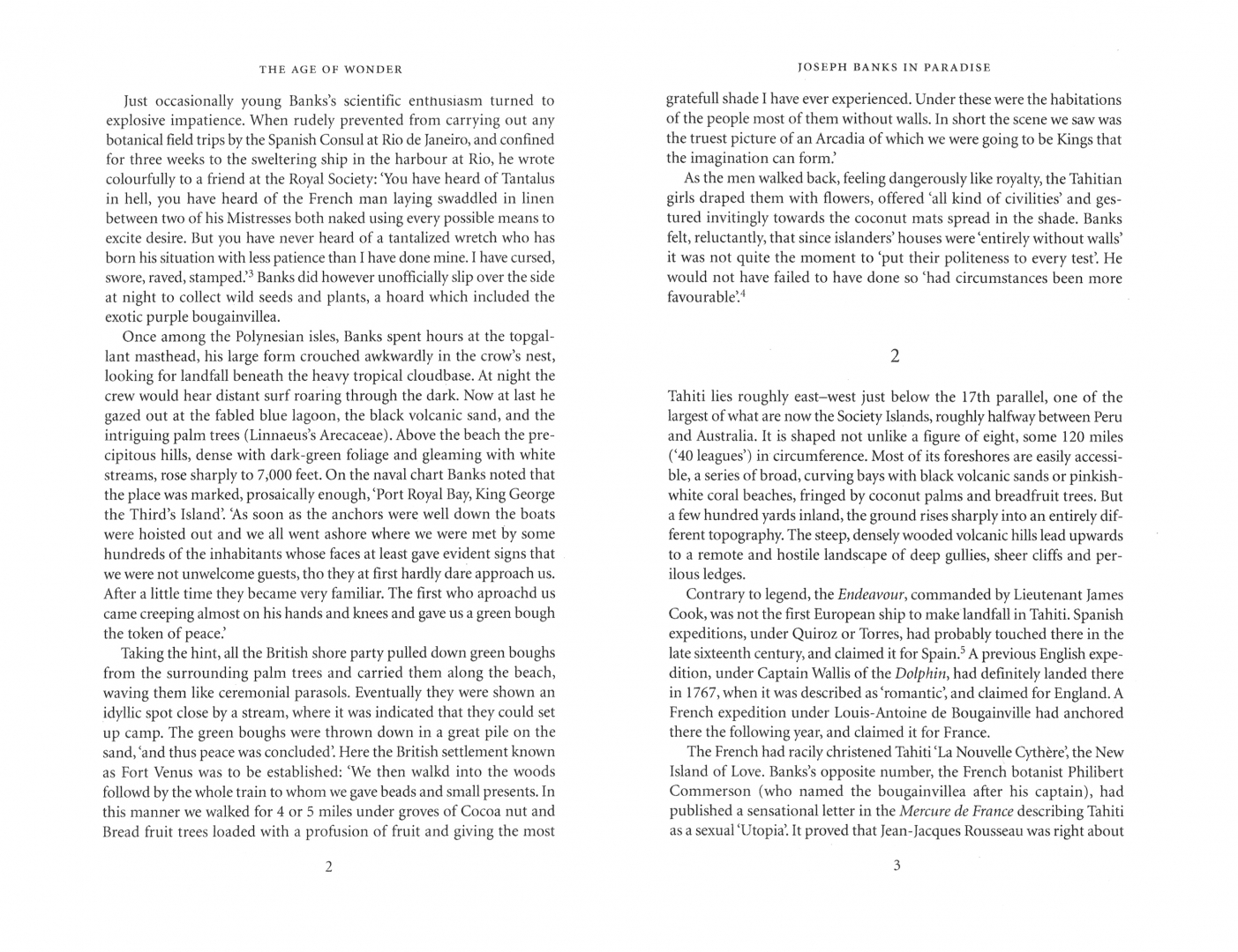 The book opens with Joseph Banks, botanist on Captain Cook’s first Endeavour voyage, who stepped onto a Tahitian beach in 1769 fully expecting to have located Paradise. Back in Britain, the same Romantic revolution that had inspired Banks was spurring other great thinkers on to their own voyages of artistic and scientific discovery – astronomical, chemical, poetical, philosophical – that together made up the ‘age of wonder’.