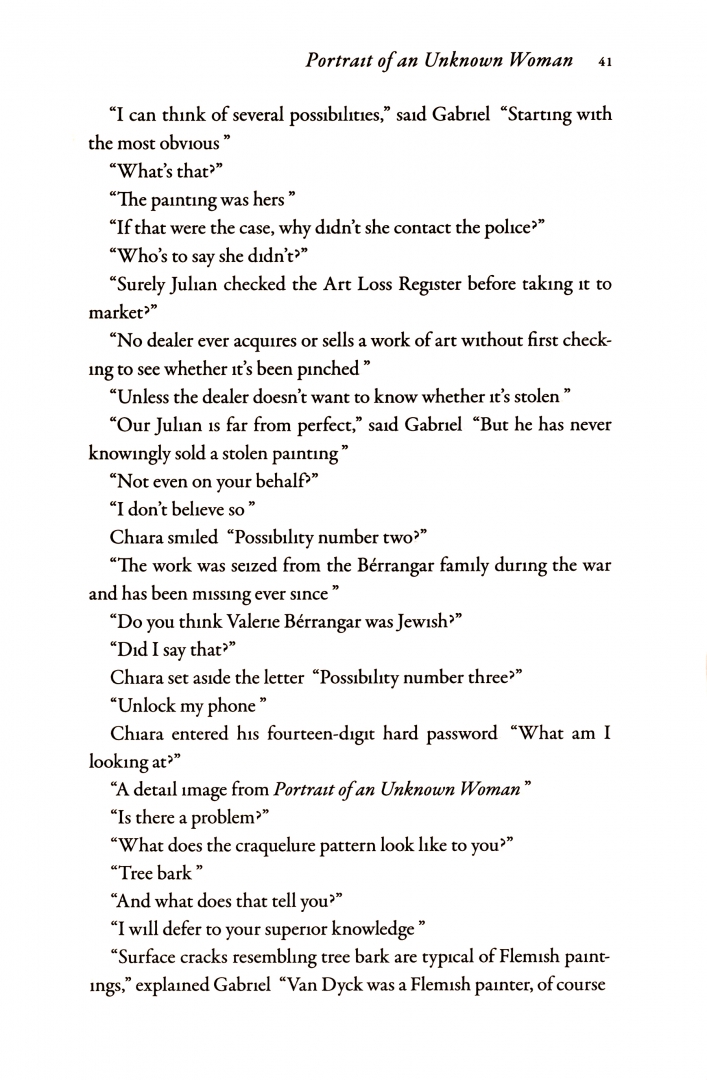 But when the eccentric London art dealer Julian Isherwood asks Gabriel to investigate the circumstances surrounding the rediscovery and lucrative sale of a centuries-old painting, he is drawn into a deadly game of cat and mouse where nothing is as it seems.