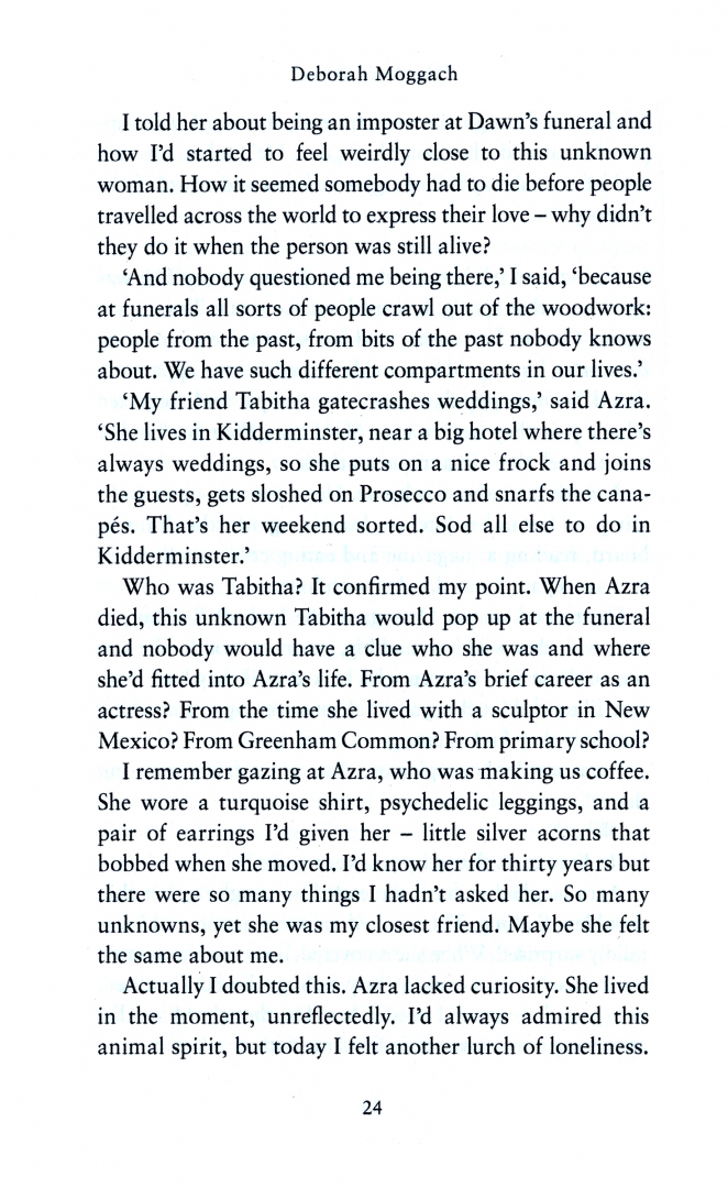 In a daze, Pru goes off to a friend's funeral. Usual old hymns, words of praise and a eulogy but...it doesn't sound like the friend Pru knew. She's gone to the wrong service. Everyone was very welcoming, it was more excitement than she's had for ages. So she buys a little black dress in a charity shop and thinks, now I'm all set, why not go to another? I mean, people don't want to make a scene at a funeral, do they? No-one will challenge her - and what harm can it do?