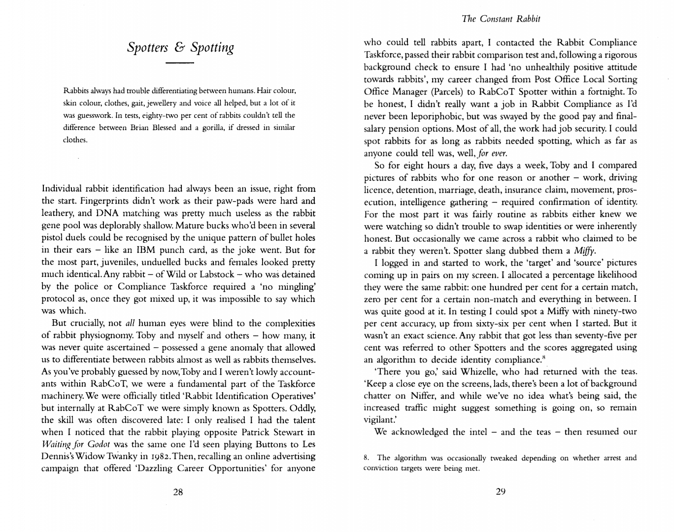 With a mass rehoming to Wales for 1.2 million rabbits looming, long-term resident Peter Knox is drawn from his customary spot on the fence and must choose his corner: a cosy job-for-life at the Rabbit Compliant Taskforce, or stand with the rabbits - and weather the full brunt of human savagery.