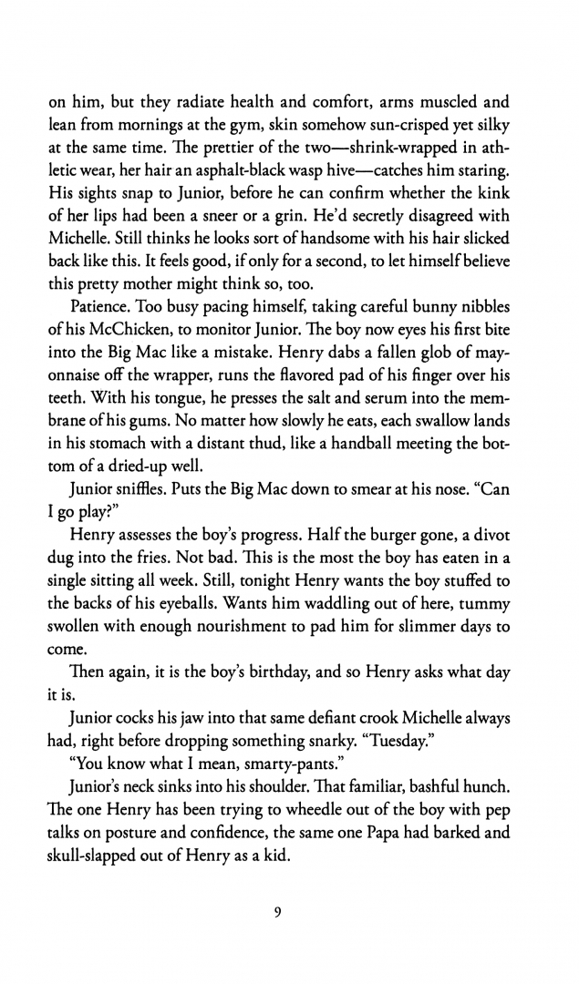 Each chapter of this deeply emotional and compassionate novel begins with amount of money in Henry's pocket, showing how literally father and son's fortunes can turn on a dime. Can they make it through tomorrow?