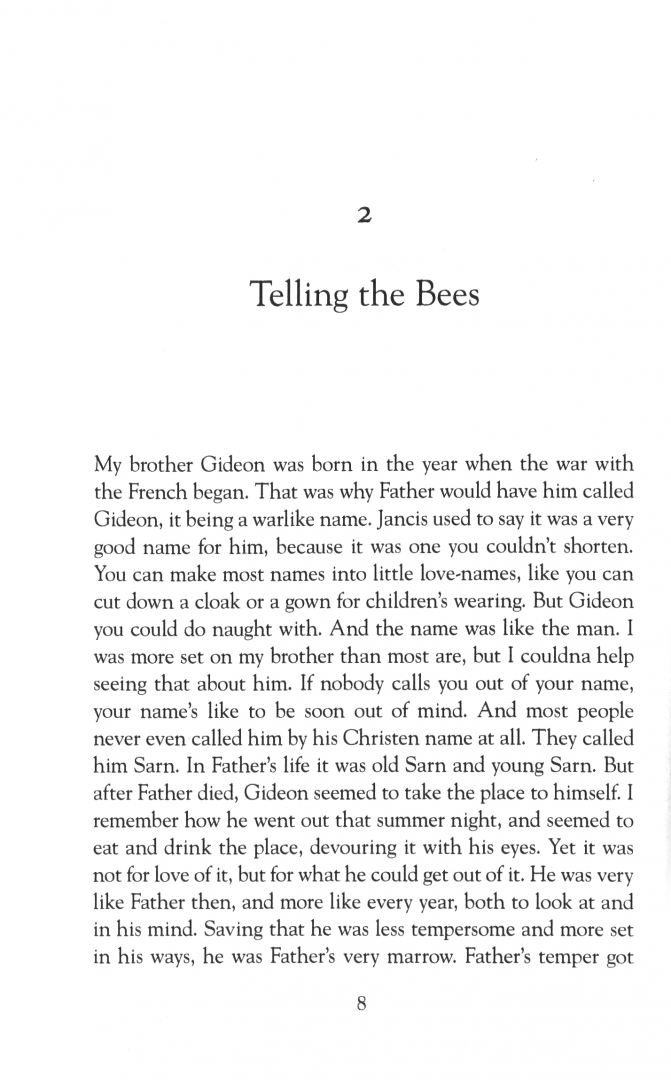 Prudence Sarn was born with a cleft palate, her 'precious bane', for which she is persecuted as a witch by her superstitious neighbours. Hiding from daily ridicule, she takes refuge in the wild Shropshire countryside, developing a profound love of nature. Furtively, Prue longs to be loved and harbours a hopeless passion for Kester Woodseaves, the weaver.