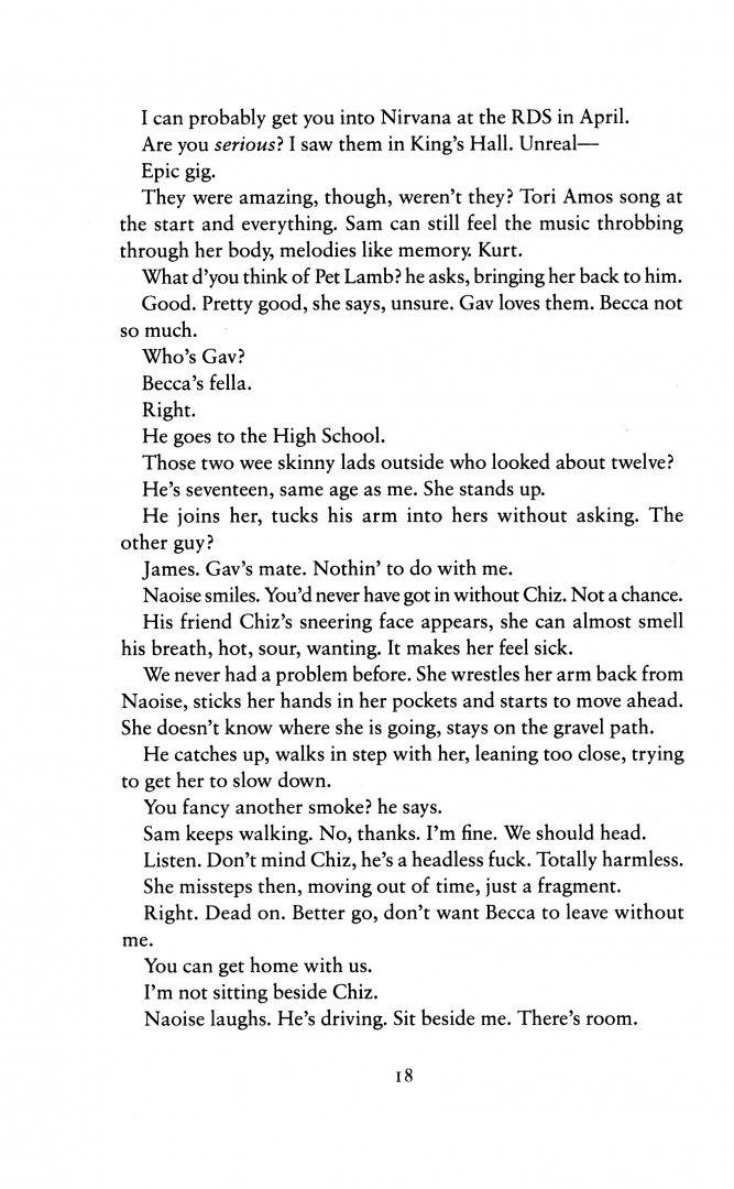 In 1994, Sam Malin plans escape. She longs for a life outside her dysfunctional family, far away from the North and all its troubles, free from her quiet brooding father Patsy, who never talks about her mother, Nuala; a woman Sam barely knew, who abandoned them twelve years ago. She finds solace in music, drugs and her best friend Becca, but most of all in an illicit relationship with a jagged, magnetic older man.