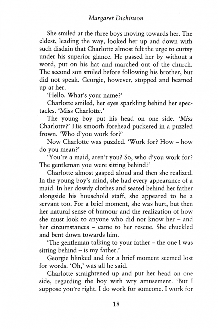 Charlotte is an only child, reared by a brutal father who cannot forgive her for not being the son he desires. Loved by most that she meets, Charlotte has a gift for friendship, and it is her work as a Sunday School teacher that gives her hope - and an escape from home.