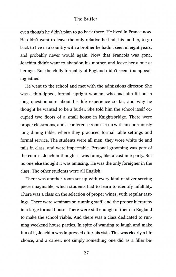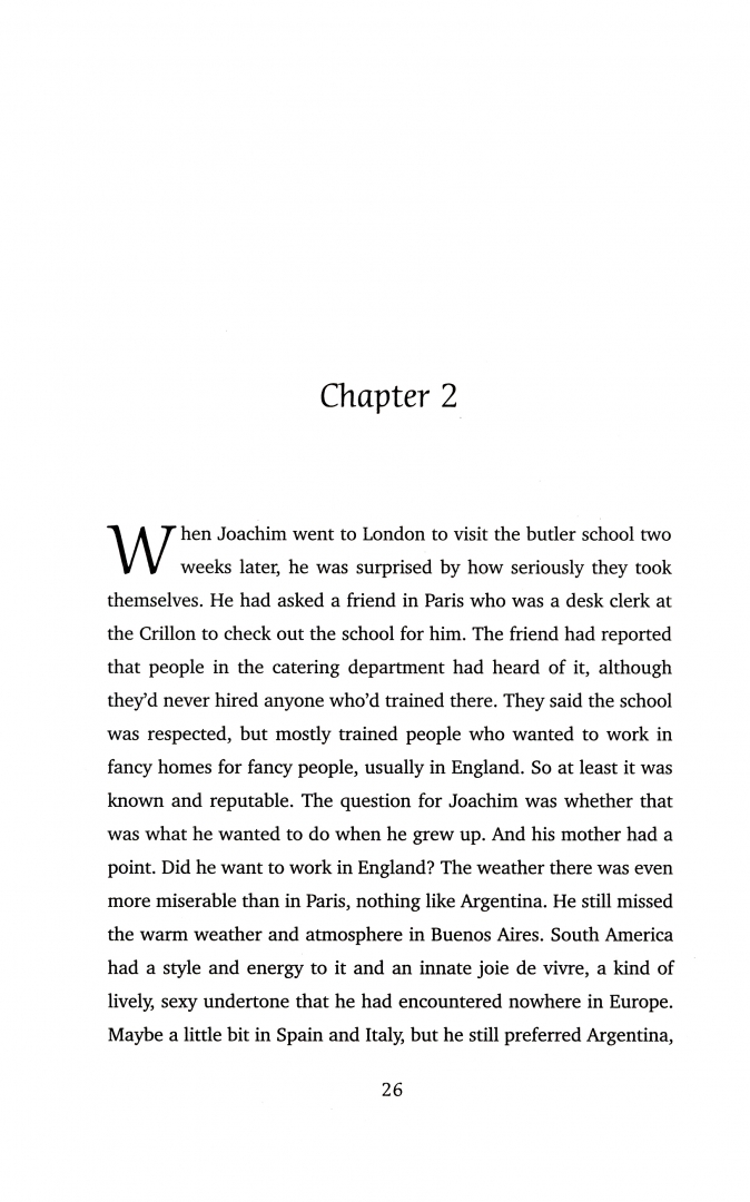 Joachim von Hartmann was born and raised in Buenos Aires by his loving German mother, Liese, along with his identical twin. But when Joachim moves to Paris with Liese in his late teens, his twin enters a dark world and refuses to leave his beloved Argentina. Joachim begins training to be a butler, fascinated by the meticulous precision and intense demands it involves, and goes on to work in some of the grandest homes in England.