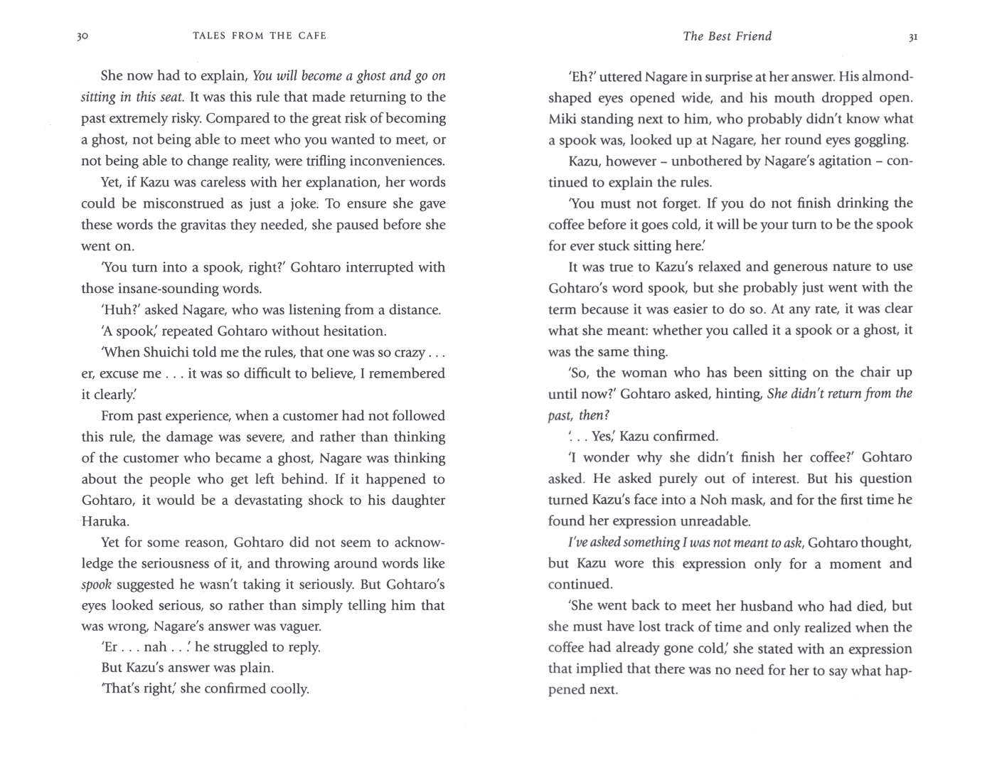 From the author of Before the Coffee Gets Cold comes Tales from the Cafe, a story of four new customers each of whom is hoping to take advantage of Cafe Funiculi Funicula's time-travelling offer.
