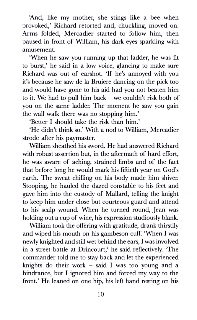 Following early beginnings as a knight in the English royal household and a champion of the tourneys, William Marshal's prowess and loyalty have been rewarded by the hand in marriage of Isabelle de Clare, heiress to great estates in England, Normandy and Ireland. Now a powerful magnate, William has weathered the difficult years of King Richard's absence on crusade and is currently serving him on campaign in Normandy while Isabelle governs their estates.