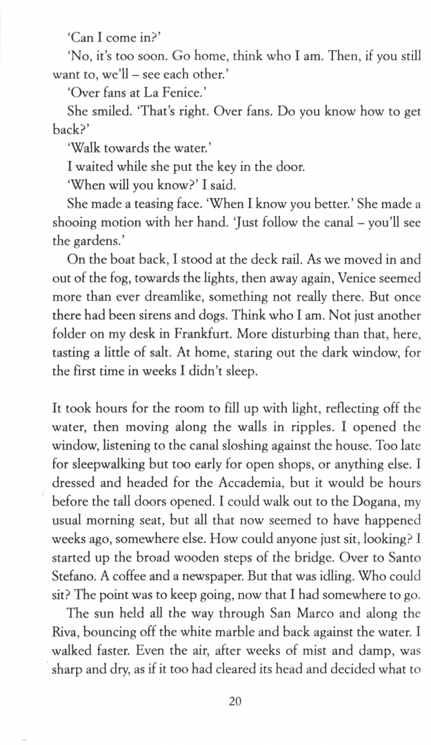 Beneath the dream-like facade he discovers a city in which everyone was compromised by occupation, not least Gianni Maglione, the suave and enigmatic Venetian who is both his mother's new suitor and the man responsible for much of Claudia's suffering. When the troubled past erupts in violent murder, Adam finds himself at the centre of a torturous web in which the most valuable thing is not a stone-cold alibi, but the truth itself.