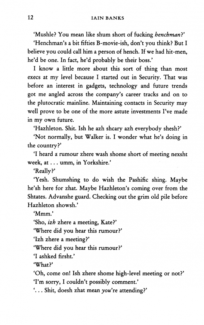 Kate Telman is a senior executive officer in The Business, a powerful and massively discreet transglobal organisation. Financially transparent, internally democratic and disavowing conventional familial inheritance, the character of The Business seems, even to Kate, to be vague to the point of invisibility. It possesses, allegedly, a book of Leonardo cartoons, several sets of Crown Jewels and wants to buy its own State in order to acquire a seat at the United Nations.