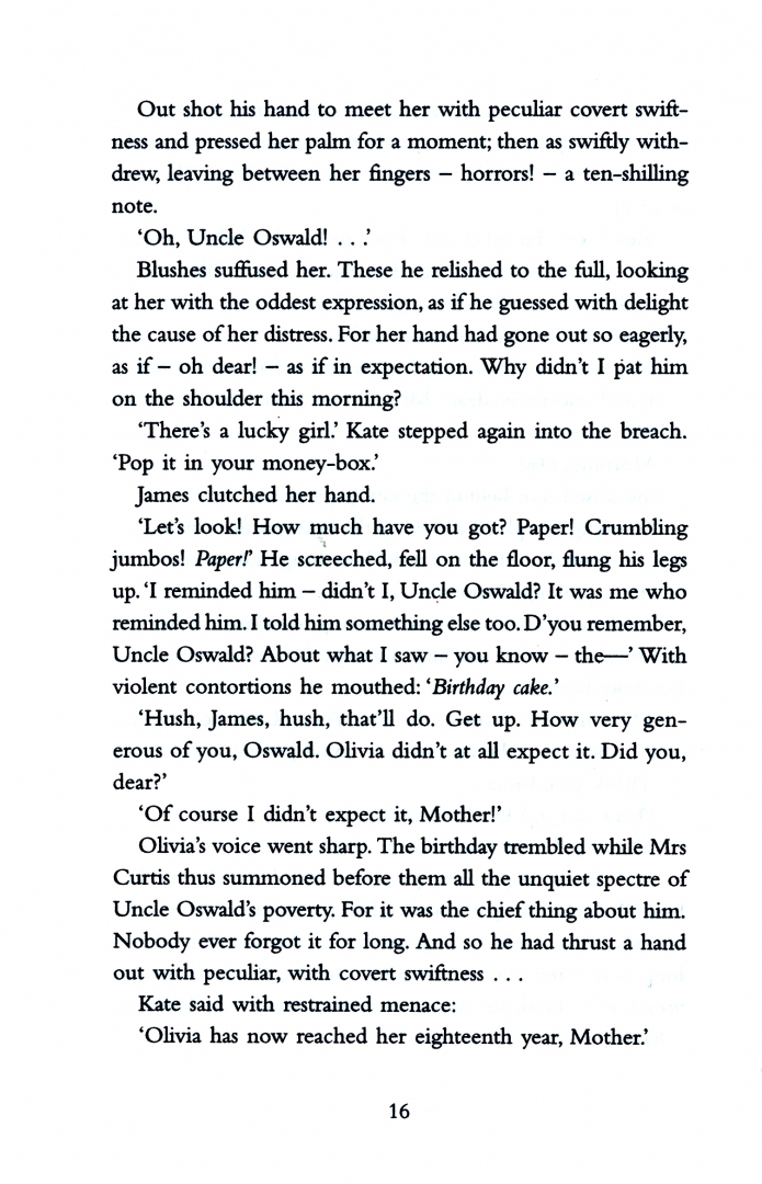 A diary for her innermost thoughts, a china ornament, a ten-shilling note, and a roll of flame-coloured silk for her first evening dress: these are the gifts Olivia Curtis receives for her seventeenth birthday. She anticipates her first dance, the greatest yet most terrifying event of her restricted social life, with tremulous uncertainty and excitement. For her pretty, charming elder sister Kate, the dance is certain to be a triumph, but what will it be for shy, awkward Olivia