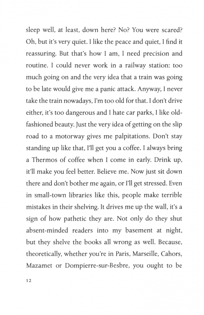 She begins to talk to him, a one-way conversation full of sharp insight and quiet outrage. As she rails against snobbish senior colleagues, an ungrateful and ignorant public, the strictures of the Dewey Decimal System and the sinister expansionist conspiracies of the books themselves, two things shine through: her unrequited passion for a researcher named Martin, and an ardent and absolute love for the arts.