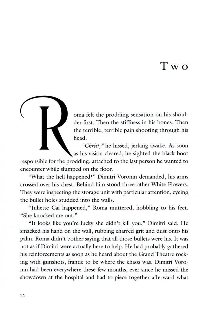 Then a new monstrous danger emerges in the city, and though secrets keep them apart, Juliette must secure Roma's cooperation if they are to end this threat once and for all. Shanghai is already at a boiling point: The Nationalists are marching in, whispers of civil war brew louder every day, and gangster rule faces complete annihilation. Roma and Juliette must put aside their differences to combat monsters and politics, but they aren't prepared for the biggest threat of all: protecting their hearts from each other.