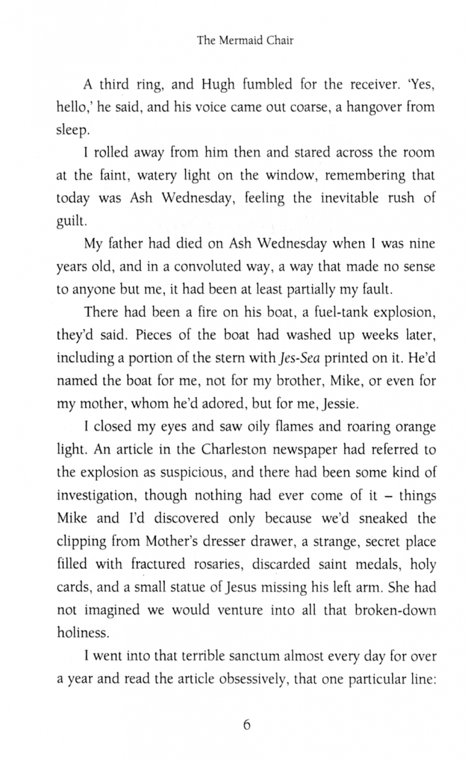 When Jessie falls passionately in love with a monk who is close to taking his final vows, she discovers a place in herself that she had never previously imagined could exist. The Mermaid Chair is the story of a woman trying to save her outgrown life - the roles, identities, securities and illusions she had created for herself - before finally emerging as something far more alive and powerful.