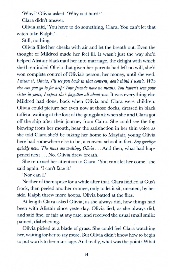 Then Clara is abducted from one of the busiest streets in the city. Olivia is told it's thieves after ransom money, but she's convinced there's more to it. As she sets out to discover what's happened to the sister she's only just begun to know, she falls deeper into the shadowy underworld of Alexandria, putting her own life, and her chance at a future with Edward, the only man she's ever loved, at risk. Because, determined as Olivia is to find Clara, there are others who will stop at nothing to conceal what's become of her . . .