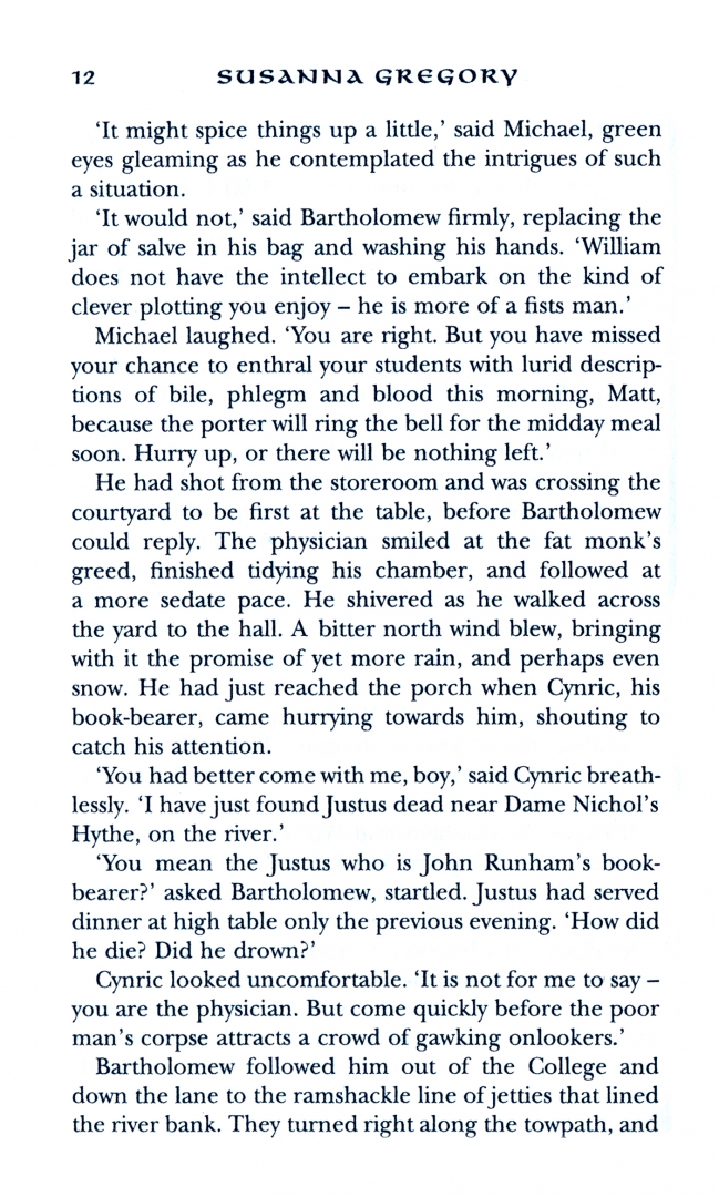 While Matthew is helping Brother Michael, Proctor of the fledgling university, investigate some suspicious deaths, Runham himself is murdered and, although mourned by none, Matthew and Michael know they have to solve the mystery before any more damage is done to their beloved Michaelhouse.