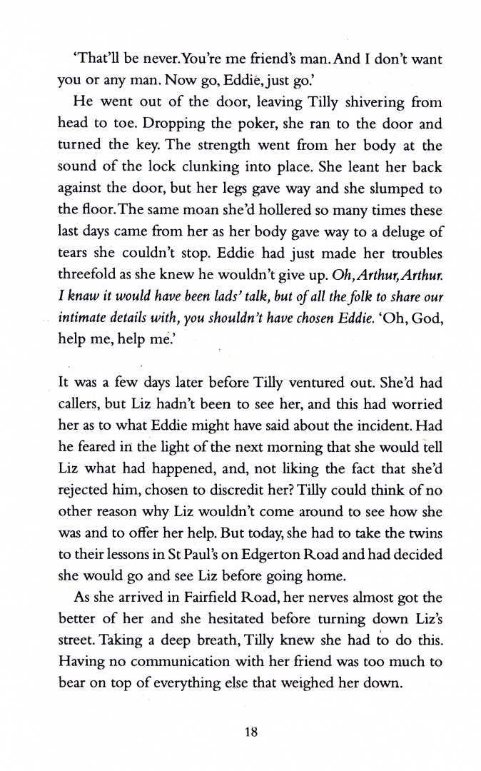 Tilly has come a long way from the run-down tenements in which she grew up. She has a small but comfortable home, a loving, handsome husband, two beautiful little'uns - Babs and Beth - and she earns herself a little money weaving wicker baskets. Life is good.