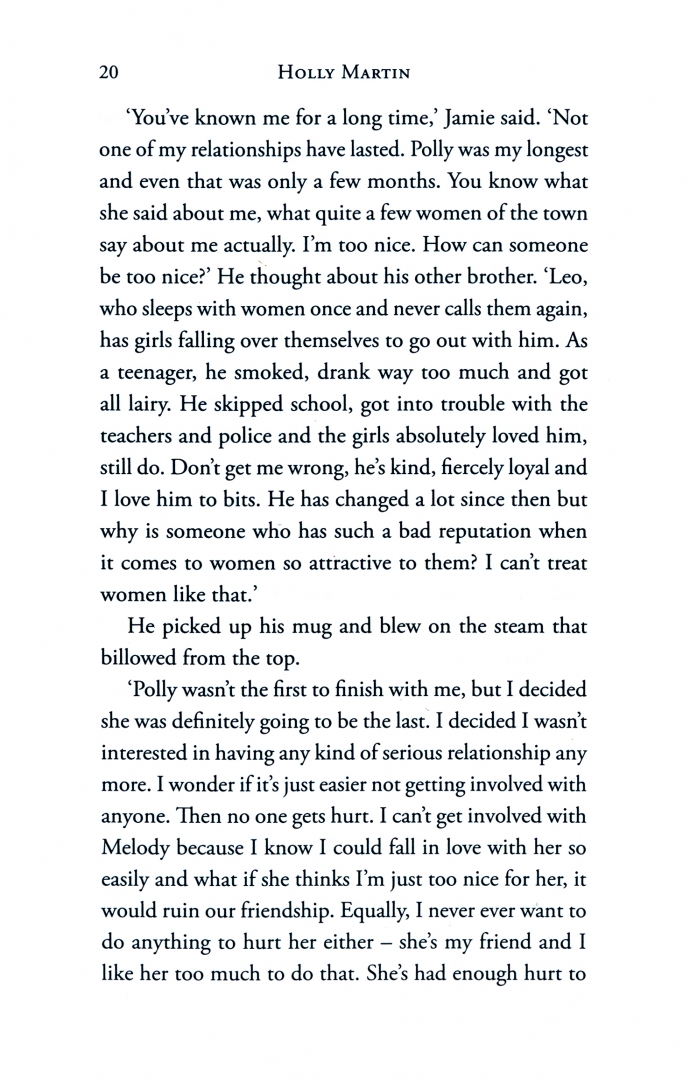 Gorgeous Jamie Jackson, with his cheeky grin and adorable puppy, works as a sculptor opposite Melody's jewellery shop. From the moment he and Melody meet sparks fly. But despite their instant attraction, a past heartache is holding Jamie back.