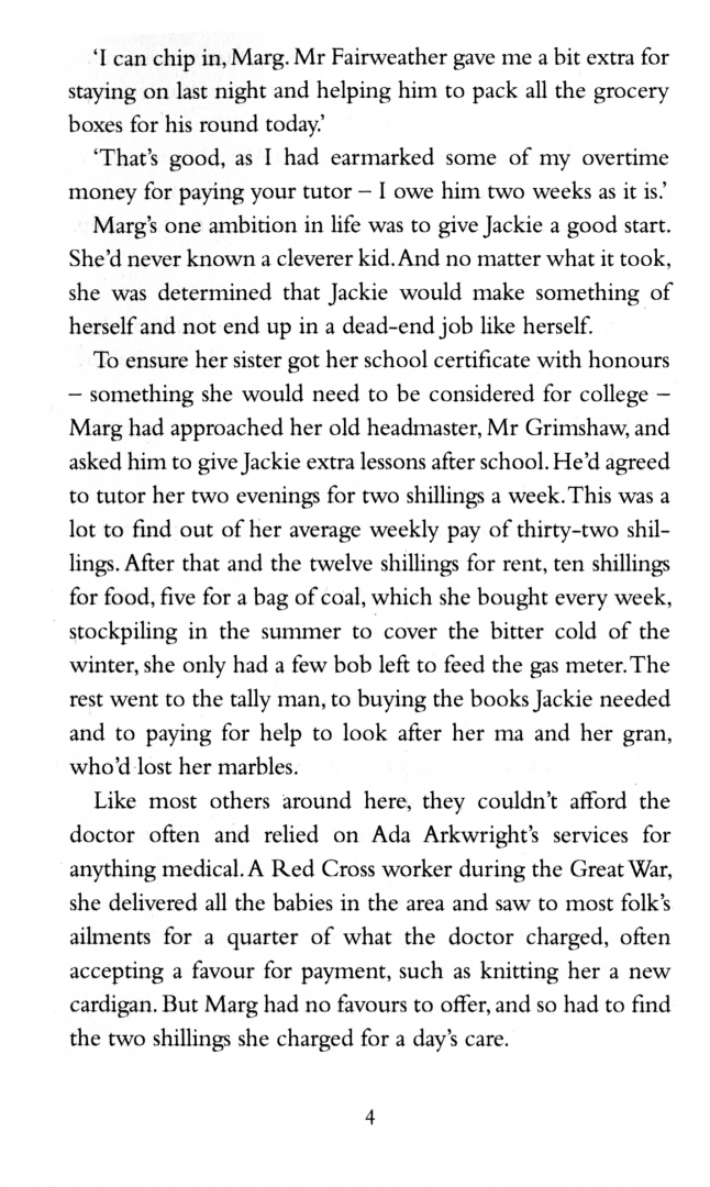 It is 1937 and Alice, Edith and Marg continue to face hardships every day, growing up on one of the poorest streets in Blackpool. Penniless, their friendship has helped them survive this far, but it'll take more than that to see them through the dark days that lie ahead . . .