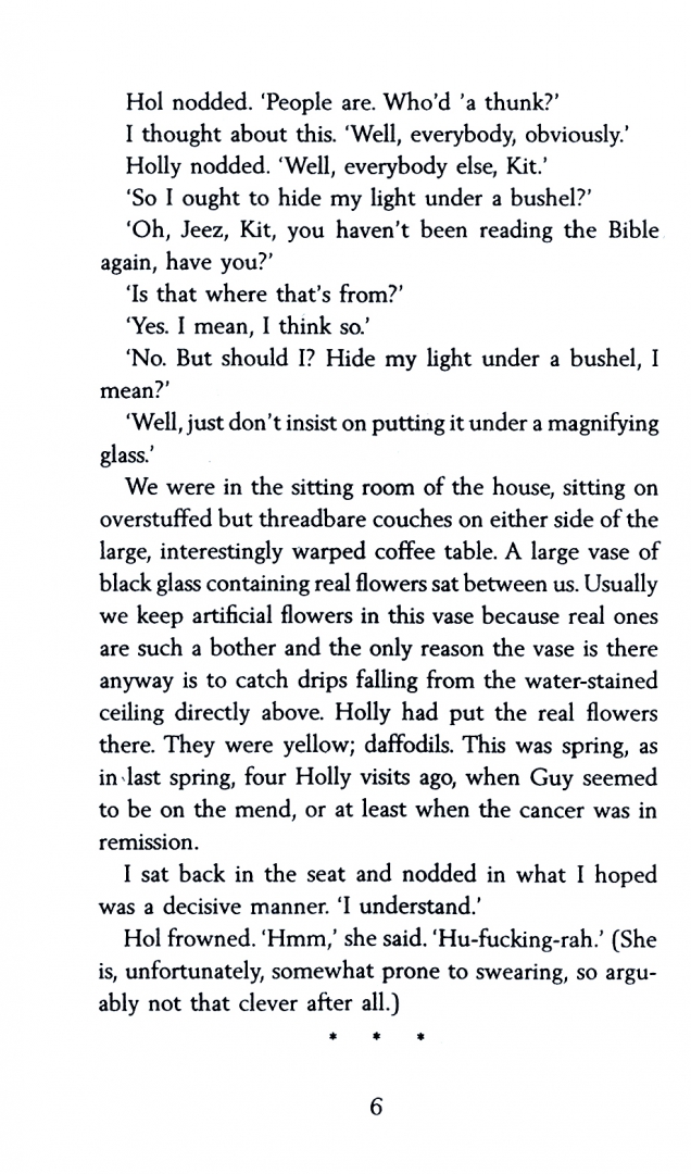 Kit doesn't know who his mother is. What he does know, however, is that his father, Guy, is dying of cancer. Feeling his death is imminent, Guy gathers around him his oldest friends - or at least the friends with the most to lose by his death. Paul - the rising star in the Labour party who dreads the day a tape they all made at university might come to light; Alison and Robbie, corporate bunnies whose relationship is daily more fractious; Pris and Haze, once an item, now estranged, and finally Hol - friend, mentor, former lover and the only one who seemed to care. But what will happen to Kit when Guy is gone? And why isn't Kit's mother in the picture? As the friends reunite for Guy's last days, old jealousies, affairs and lies come to light as Kit watches on.