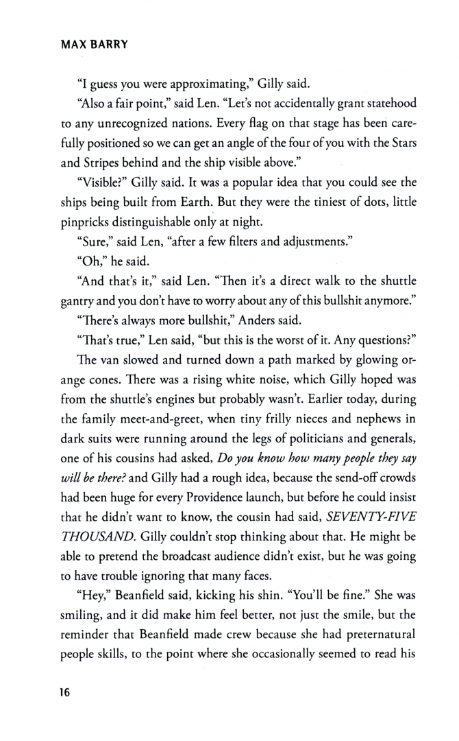 Seven years after first contact, Providence Five launches. It is an enormous and deadly warship, built to protect humanity from its greatest ever threat. On board is a crew of just four-tasked with monitoring the ship and reporting the war's progress to a mesmerized global audience by way of social media.