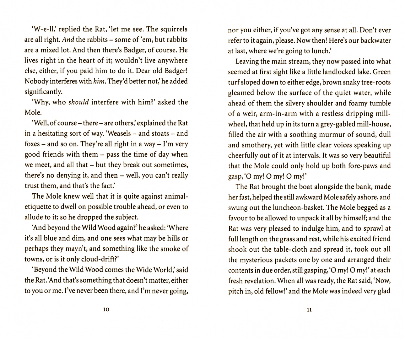 Tired of spring cleaning, Mole ventures above ground into the warm sunshine, and happens upon his friend Ratty. Together they picnic on the sparkling, burbling river, brave the sinister Wild Wood in wintertime to visit the bad-tempered Badger, and take to the open road in a caravan with dear, silly old Toad. But when Toad's attention turns to motor cars, his reckless behaviour goes from bad to worse. Badger, Rat and Mole must save their friend from ruin, and Toad Hall from the clutches of the rascally Stoats and Weasels.