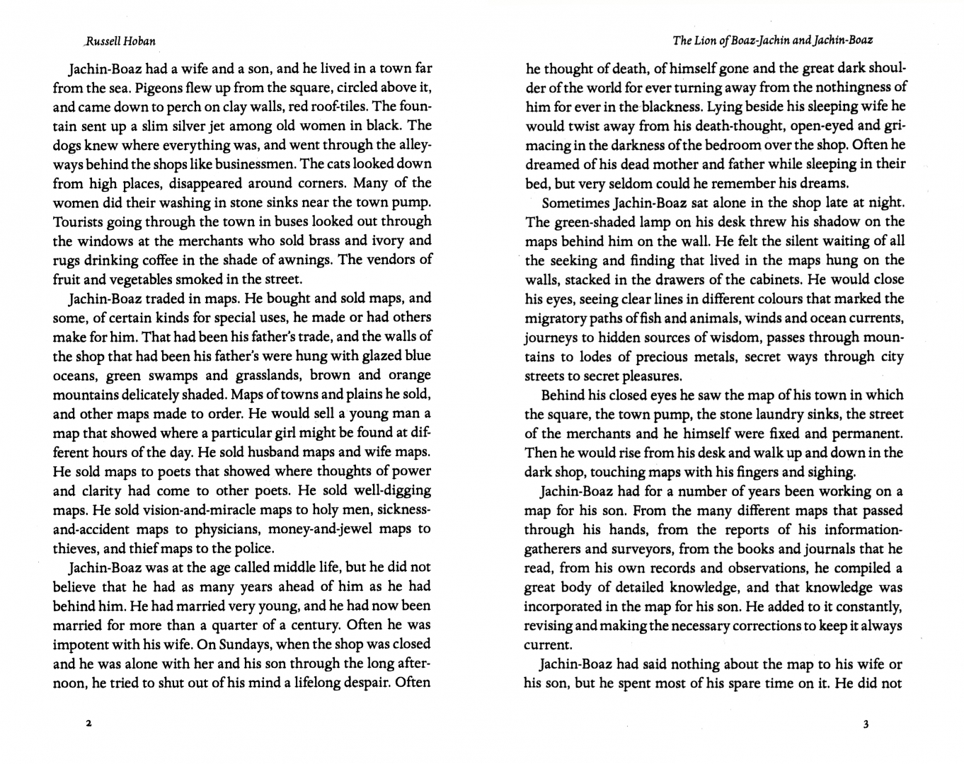 'I have gone to look for a lion.' In a world where lions have become extinct, the map-maker Jachin-Boaz nevertheless abandons his wife and son to find one, leaving just this note. But his decision has unexpected consequences. He will be pursued by his son, Boaz-Jachin, and by something else: a tawny-skinned, amber-eyed beast from another place and time, a bringer of life and death.