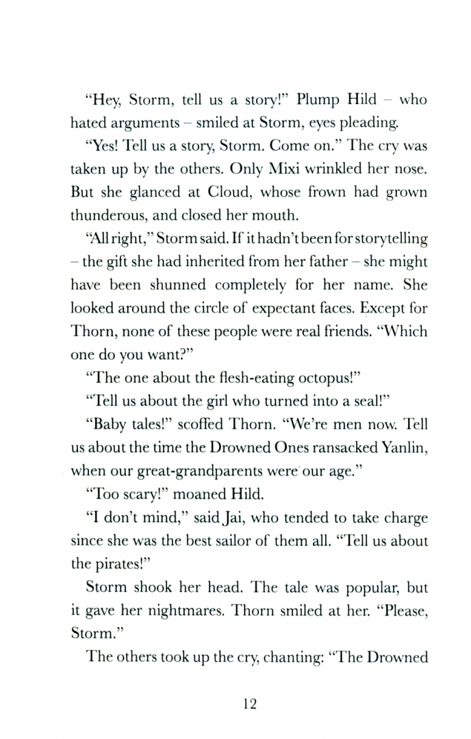 The Elementals bestow her with a great and terrible gift. Storm-bringer. Storm-rider. Storm-queller. Storm has powers that no one, not even the island Elders, can understand. And when the Drowned Ones – a savage band of pirates who roam the seas on floating towns – attack her island, will her powers help her to save the people she loves, or is her fate to betray everything she holds dear? Soon Storm faces a decision that will change her life – and that of everyone who lives on her island – forever.