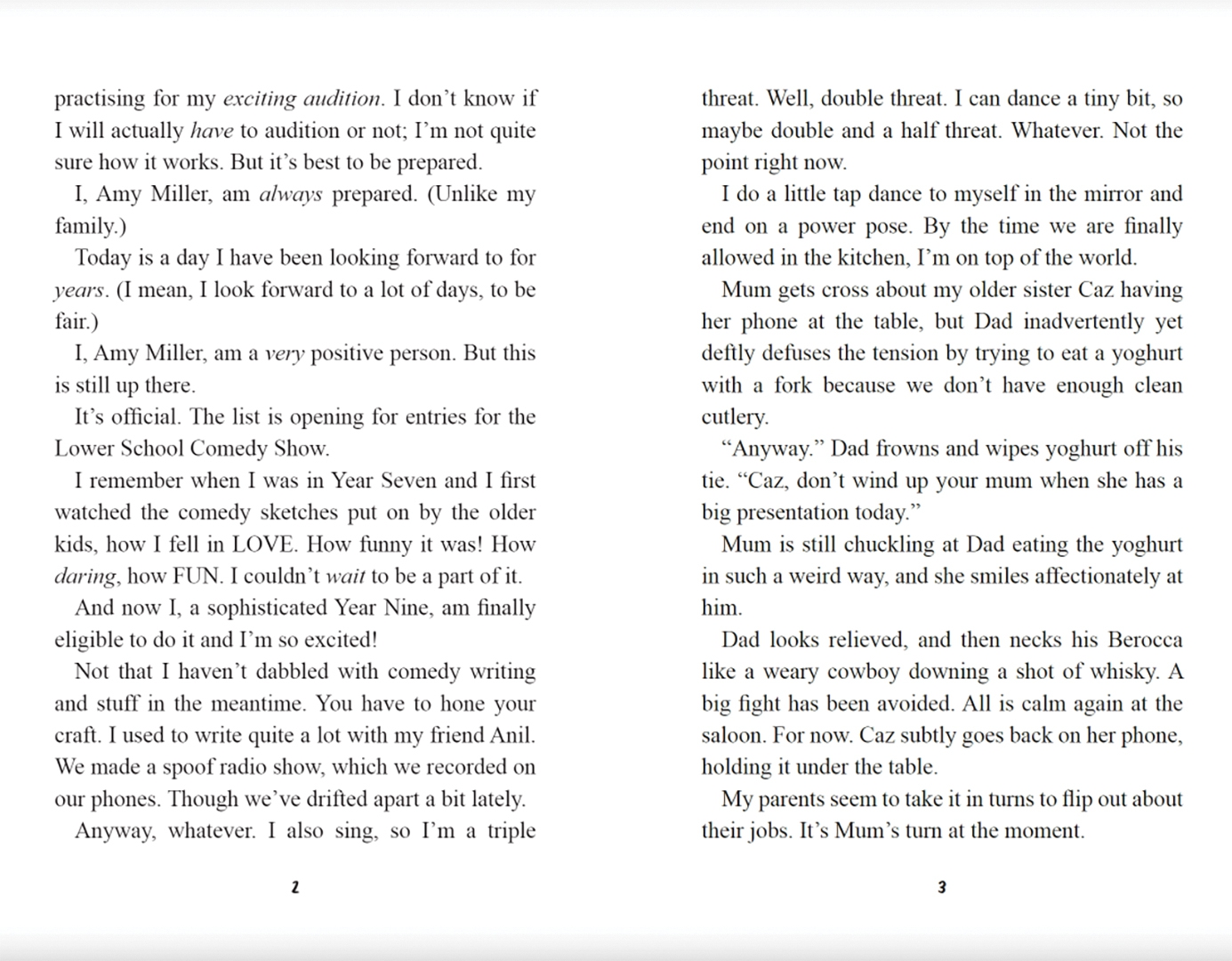Amy Miller is a very positive person and she is fully prepared to be the star of the school Comedy Show. But when Harry is put in charge, he stops her from performing or writing or doing anything fun.
