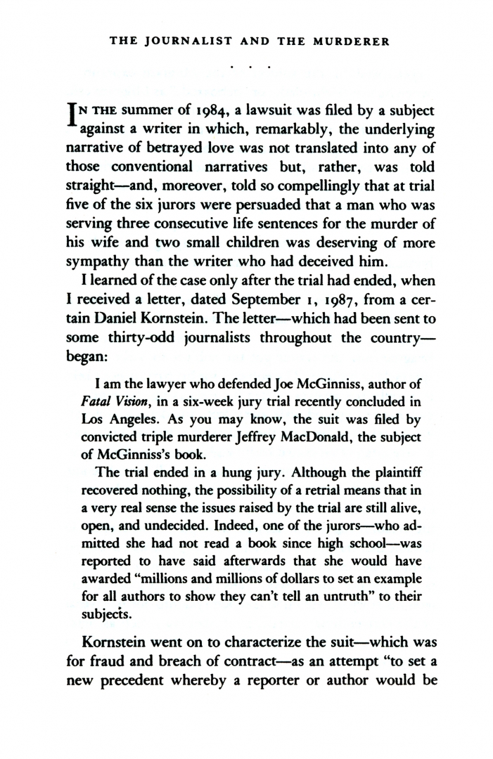 In equal measure famous and infamous, Janet Malcolm’s book charts the true story of a lawsuit between Jeffrey MacDonald, a convicted murderer, and Joe McGinniss, the author of a book about the crime. Lauded as one of the Modern Libraries “100 Best Works of Nonfiction”, The Journalist and the Murderer is fascinating and controversial, a contemporary classic of reportage.