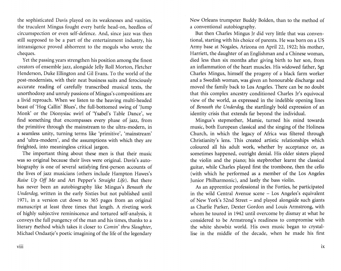 Bass player extraordinaire Charles Mingus, who died in 1979, is one of the essential composers in the history of jazz, and Beneath the Underdog, his celebrated, wild, funny, demonic, anguished, shocking and profoundly moving memoir, is the greatest autobiography ever written by a jazz musician.