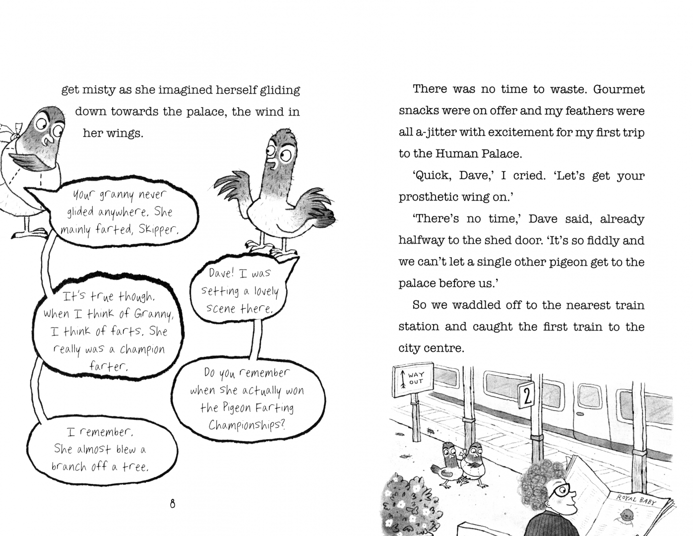 Dave Pigeon and his best friend Skipper are taking in the sights of London. Whilst pecking around the gates of the Royal Palace, looking for high-brow snacks to feast on, they meet Prince Raju Pigeon, one of the Queen's personal birds from the Royal Lofts.