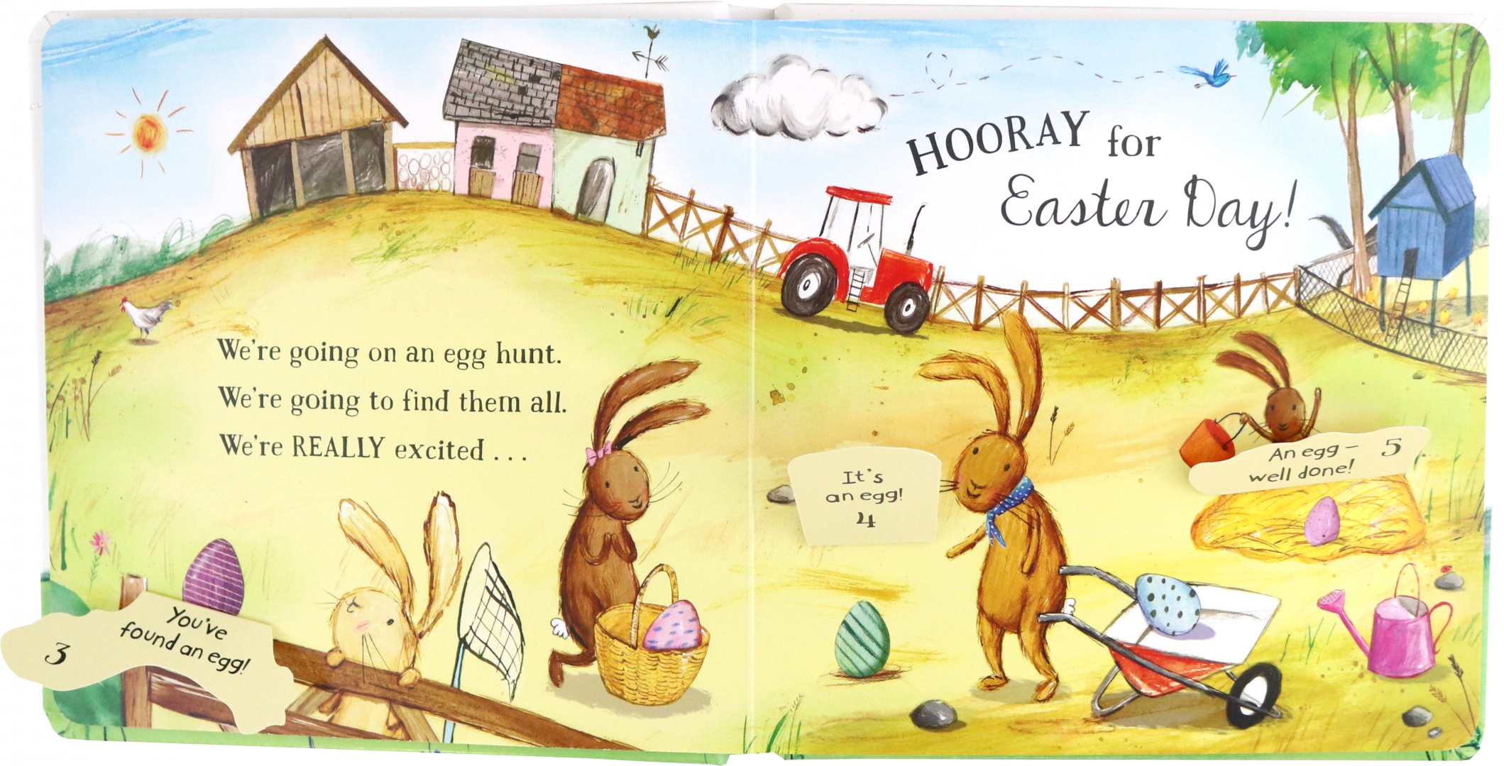 Join the Easter Bunnies as they set off on an exciting lift-the-flap Easter egg hunt. With ten eggs to find and count, it's great fun. But watch out for the obstacles along the way – lambs, chicks, bees and ducks – and there's even a wolfish surprise, so do take care.