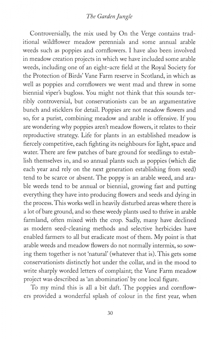 The Garden Jungle is at times an immensely serious book, exploring the environmental harm inadvertently done by gardeners who buy intensively reared plants in disposable plastic pots, sprayed with pesticides and grown in peat cut from the ground. Goulson argues that gardens could become places where we can reconnect with nature and rediscover where food comes from.