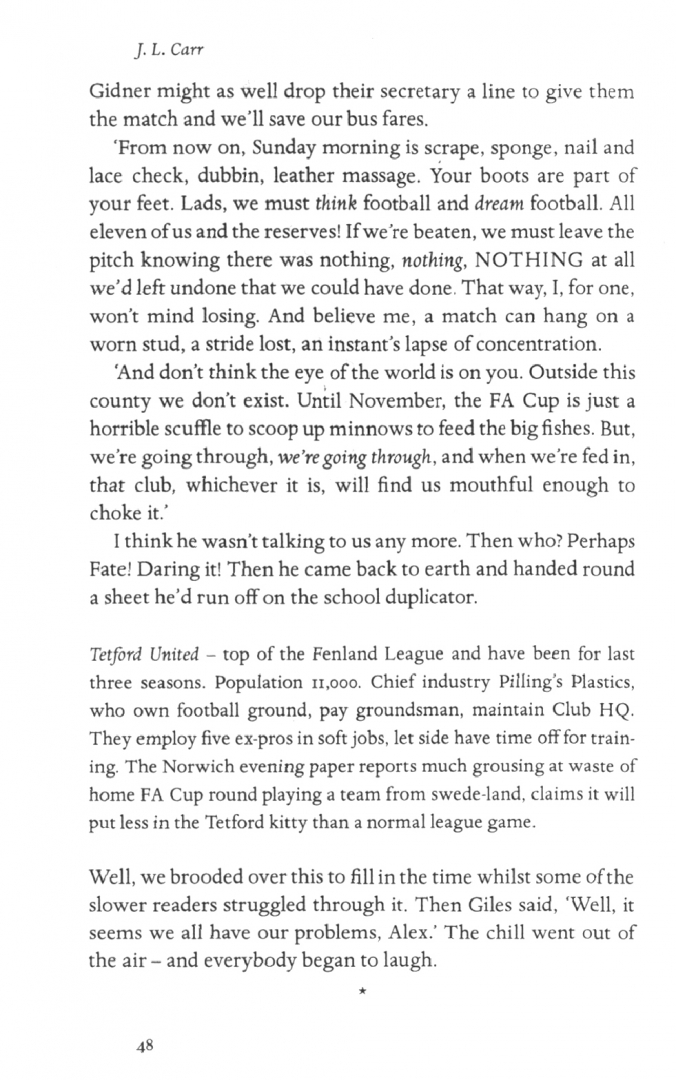 In their new all-buttercup-yellow-stripe, Steeple Sinderby Wanderers, who usually feel lucky when their pitch is above water-level, are England's most obscure team. This uncategorizable, surreal and extremely funny novel is the story of how they start the season by ravaging the Fenland League and end it by going all the way to Wembley.