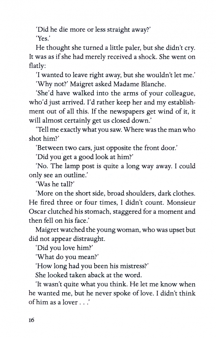 'Maigret had never been comfortable in certain circles, among the wealthy bourgeoisie where he felt clumsy and awkward ... Built like a labourer, Oscar Chabut had hauled himself up into this little world through sheer hard work and, to convince himself that he was accepted, he felt the need to sleep with most of the women.'