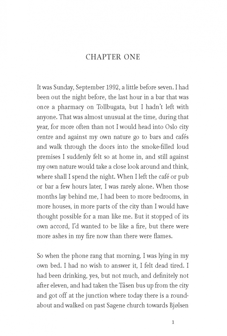 Existence has become a question of holding on to a few firm things. Loud, smoky bars, whisky, records, company for the night and taxis home. Or driving his Mazda into the stunning, solitary landscape outside of Oslo, sleeping in the car when his bed is an impossible place to be.