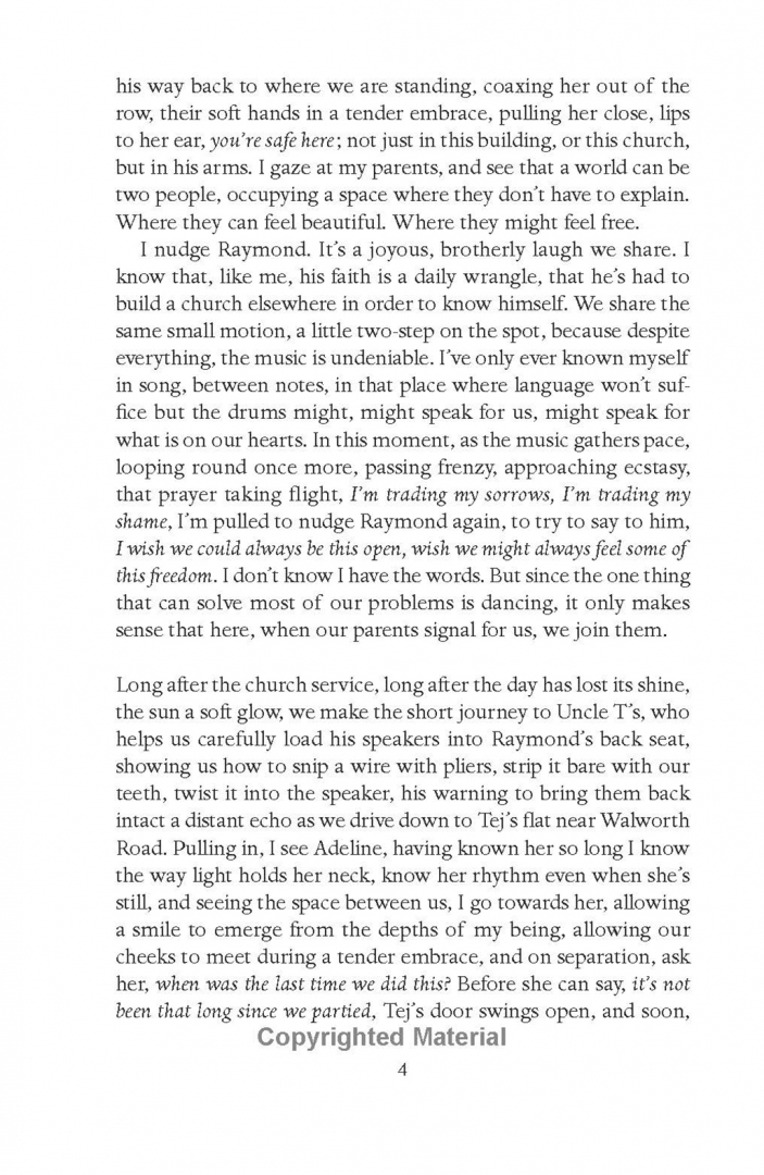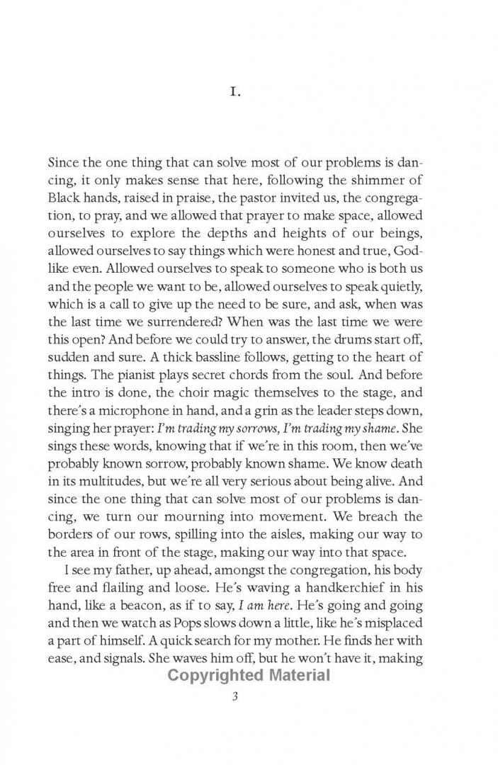 At Church with his family, the shimmer of Black hands raised in praise. With his band, making music speaking not just to their hardships, but their joys. Grooving with his best friend, so close their heads might touch. Dancing alone to his father's records, uncovering parts of a man he has never truly known. His youth, shame and sacrifice.